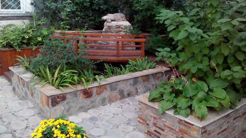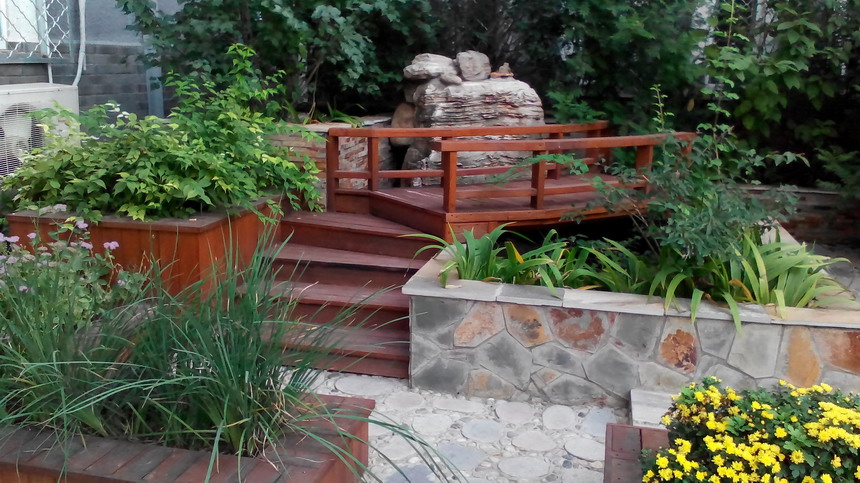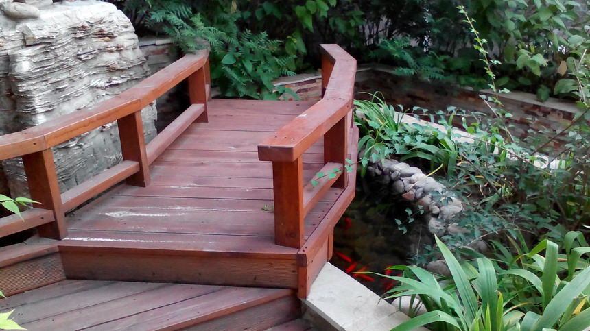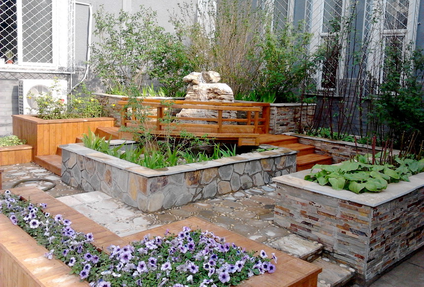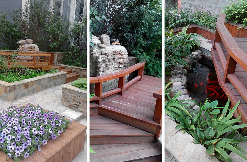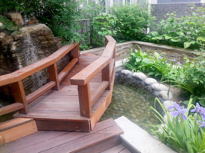 本案是广场角落花园,项目位于北京市丰台区,50平米的角落没有什么使用功能,将其作为景观是非常合适的,小桥流水、鱼儿游弋、空间层次丰富、移步换景、花繁叶茂让原本沉寂的空间变得趣味盎然,焕发生机。