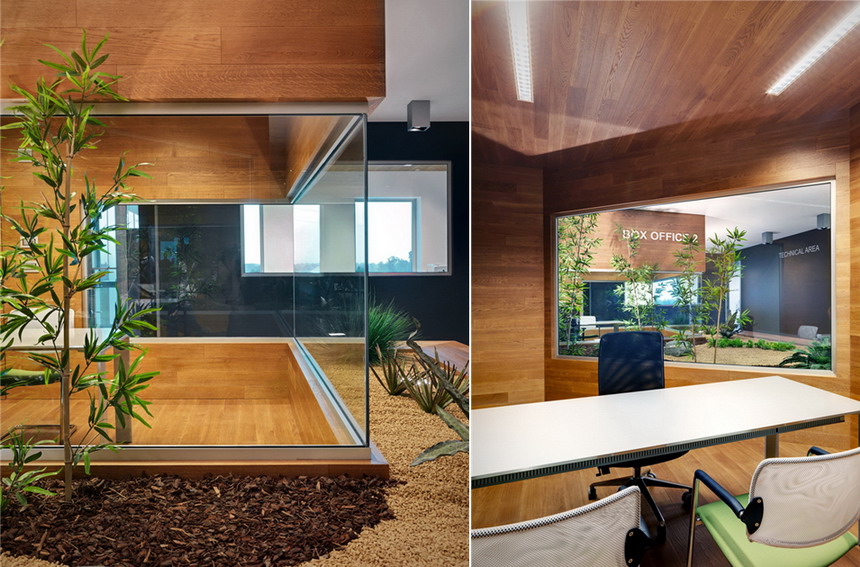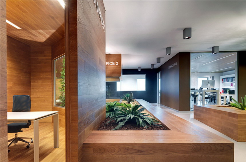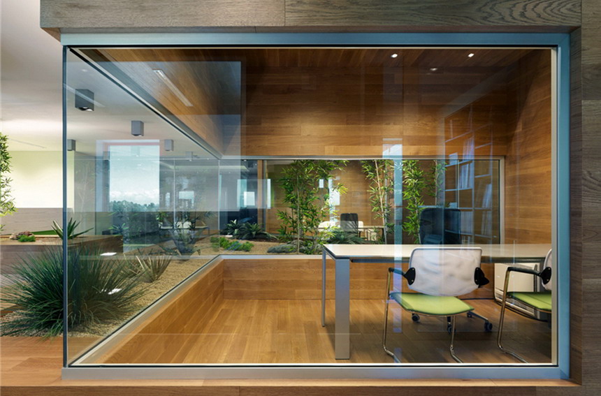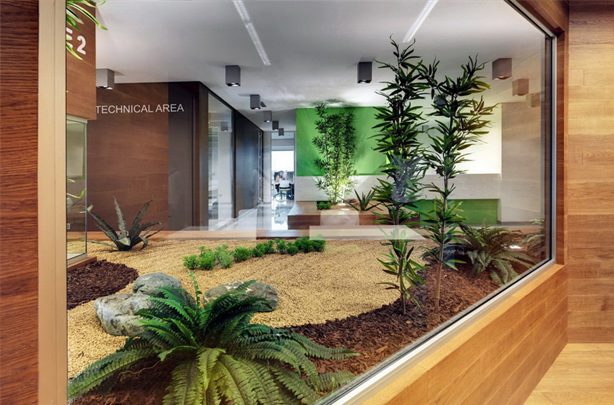本案是Berrry办公室室内花园,采用非常现代的设计手法。让工业建筑页能充满自然气息,向上生长的植物给人以生机勃勃的感觉。各个分区都能通过半透明的墙壁拓展视野观赏景观。