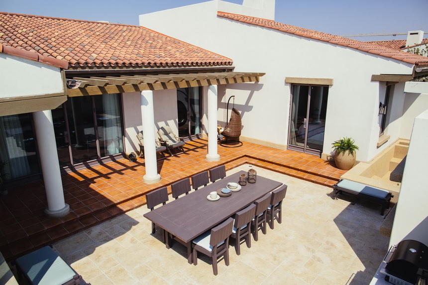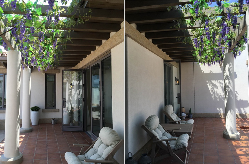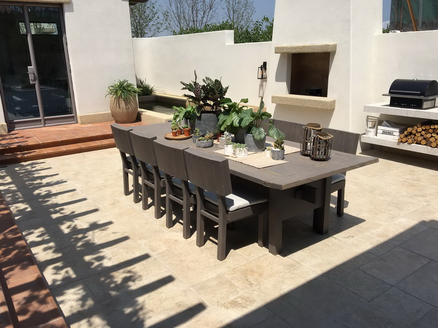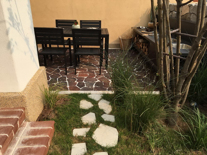 本案是秦皇岛海边度假别墅项目的庭院,项目位于秦皇岛美丽的海滨,建筑及庭院的风格统一,均是地中海度假风格,并采用东北特有的火山岩作为地面主要材料,以满足室外活动功能为主,室外壁炉,烧烤架配套齐全,满足一家人周末度假的室外活动空间。